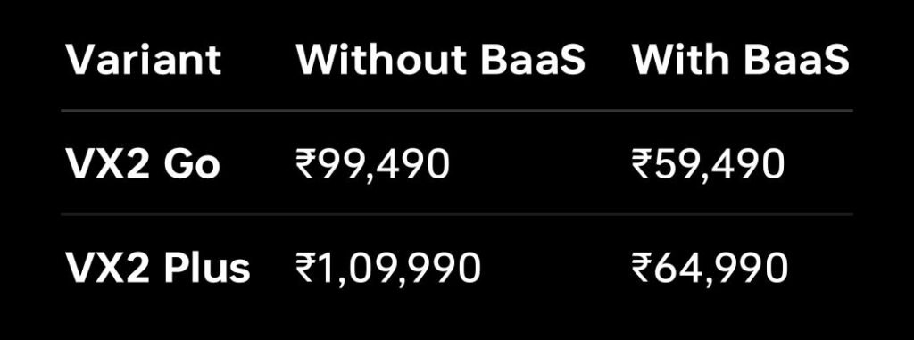 Hero Vida launched the BaaS (Battery as a service) version of VX2 Go and VX2 Plus. This BaaS version allows cost effective for the customers and easier battery maintenance. It means you have to purchase a scooter chassis and subscribe to the battery separately. But in the full version you have to purchase the battery also. In the BaaS version the company gives you battery as rent. The customers pay this cost of service validity.